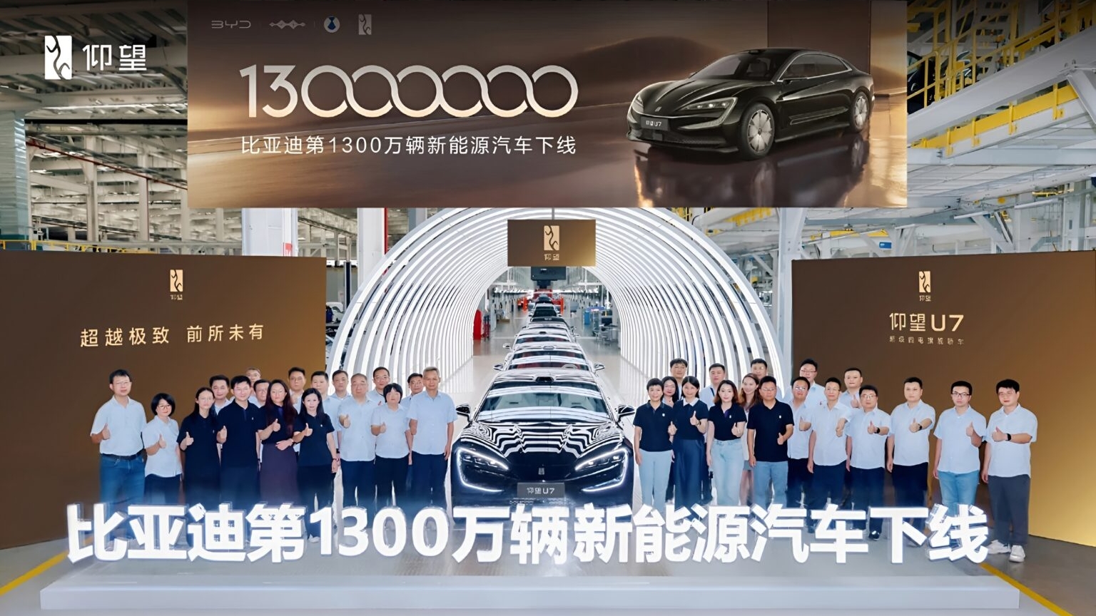 BYD vừa chính thức xuất xưởng chiếc xe năng lượng mới (NEV) thứ 13 triệu, đánh dấu một cột mốc ấn tượng trong quá trình phát triển của hãng. Mẫu xe mang dấu mốc lần này là Yangwang U7 – sedan hiệu suất cao thuộc thương hiệu cao cấp Yangwang.